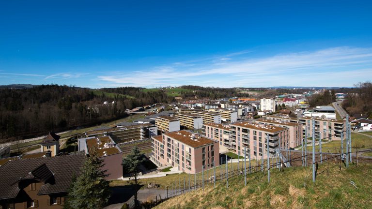 Gut bewacht vom 11 Meter hohen Hahn gelangt man über die Thorenbergbrücke in den mittigen Bereich des Quartieres. Auf der Seite der kleinen Emme liegt der Quartierteil „Allmend“ mit vielen Reiheneinfamilienhäuser. Gegenüber Richtung Bahnhof liegen die Gebiete „Säntihof“, „Grünauring“ und „an der kleinen Emme“. Am Grünauring steht das höchste Gebäude des Quartiers mit 10 Wohngeschossen.